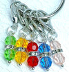 Set of 5 fine crystal stitch markers in a rainbow of pastel colors adorned with a band of crystal on silver rings or lobster clasps. The crystal reflects the light beautifully like suncatchers as you craft. Includes a ring for storage.  Add some elegance and whimsy to your knitting!