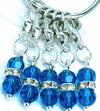 Set of 5 fine royal bue crystal stitch markers adorned with a band of crystal on silver rings or lobster clasps. The crystal reflects the light beautifully like suncatchers as you craft. Includes a ring for storage.  Add some elegance and whimsy to your knitting!